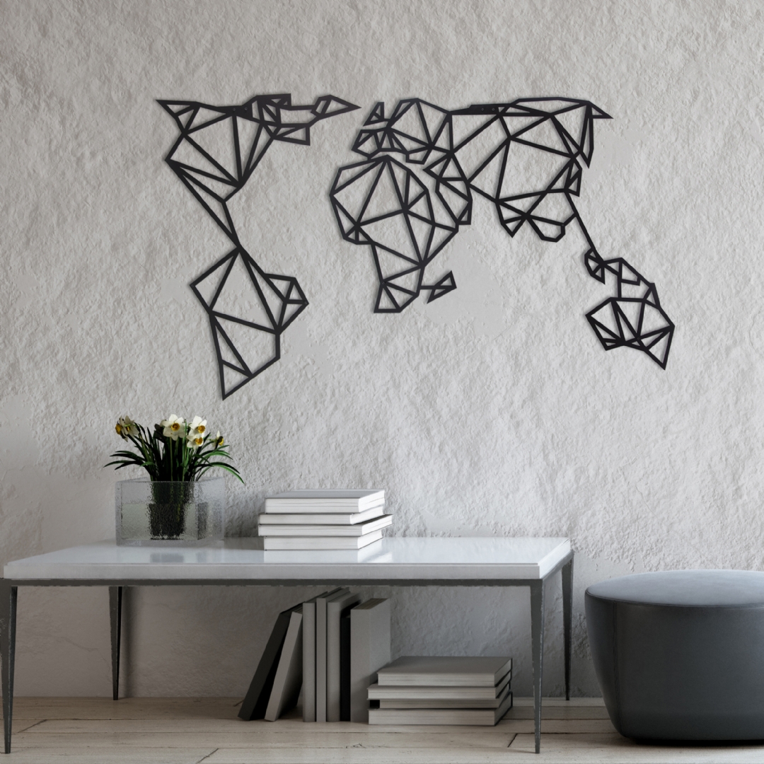 Geometrik Dünya Haritası Metal Duvar Dekorasyonu